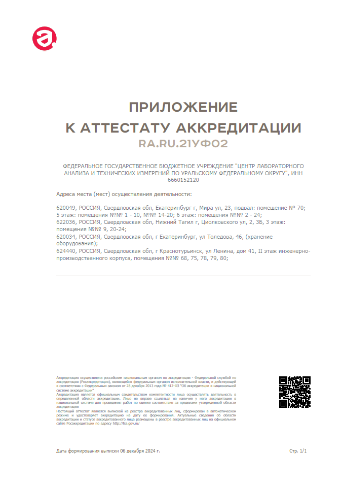 Аттестат аккредитации ФГБУ "ЦЛАТИ по УФО" RA.RU.21УФ02