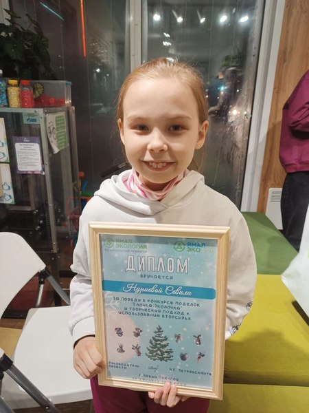 Победу в конкурсе одержала Севиль Нуриева, дочь инженера организационно-технического отдела Эльвиры Нуриевой, жюри высоко оценило игрушку, созданную девочкой из вторичных материалов.