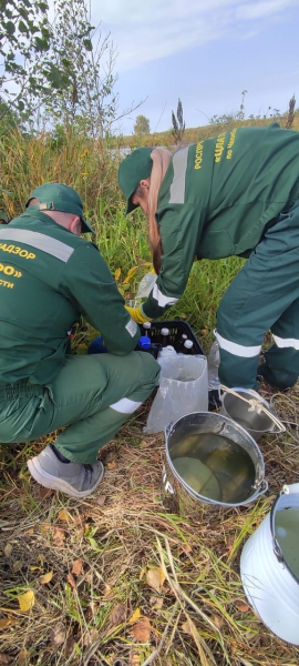 Осуществлен отбор проб природной воды для определения концентрации следующих веществ: сухой остаток, БПК5, аммоний-ион, нитрит-ион, нитрат-ион, фосфат-ион, железо, АПАВ, нефтепродукты, взвешенные вещества.