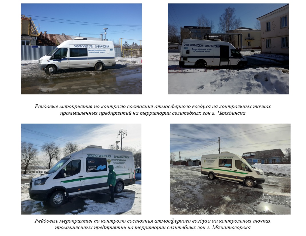 При объявлении НМУ на территории городов, включенных в федеральный проект «Чистый воздух», неоднократно в марте месяце, специалисты филиала сопровождали рейдовые мероприятия Росприроднадзора по контролю состояния атмосферного воздуха на контрольных точках промышленных предприятий селитебных зон г. Челябинска и г. Магнитогорска.