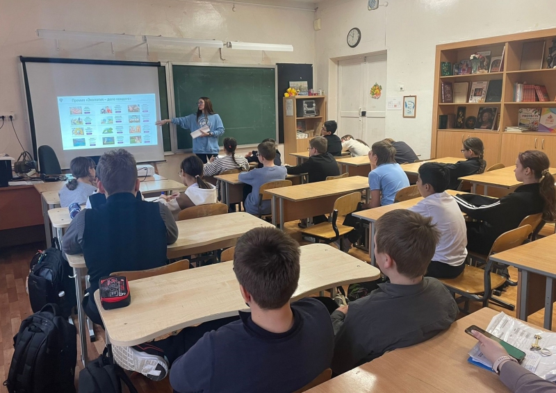 Сотрудники ЦЛАТИ провели урок экологии, в ходе которого ребят ознакомили с различными специальностями в сфере экологии и природопользования, рассказали про деятельность ЦЛАТИ по УФО и Росприроднадзора.
