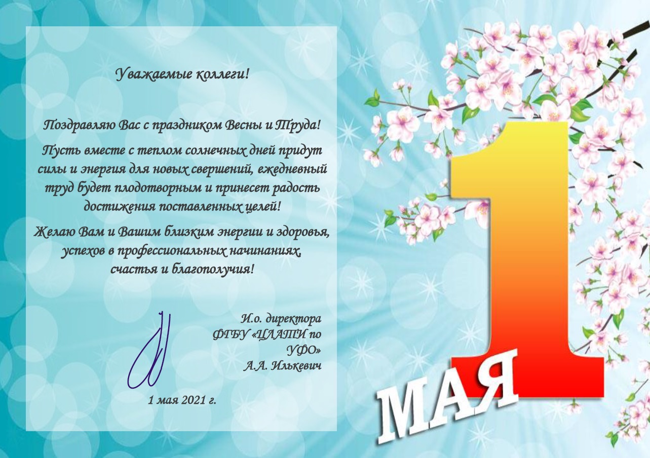 Поздравление ФГБУ "ЦЛАТИ по УФО" с праздником Весны и Труда - ФГБУ  "ЦЛАТИ по УФО"<p style="text-align: right;"><span style="color: #ff0000;"></span>