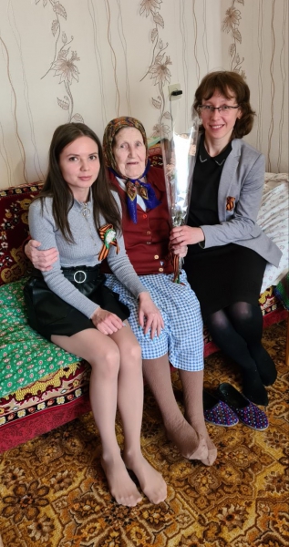 Также сотрудники побывали в гостях у труженицы тыла Великой Отечественной войны Векшиной Музы Константиновны, награжденной орденами и медалями СССР за самоотверженный труд.