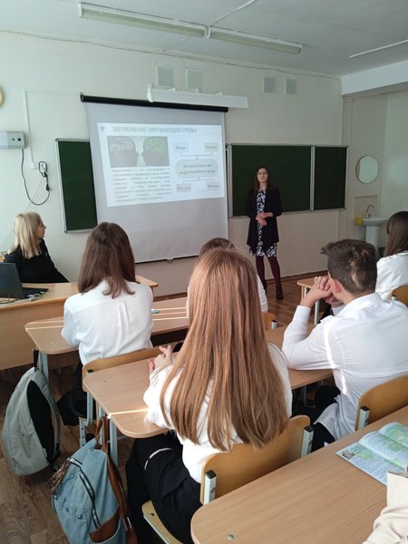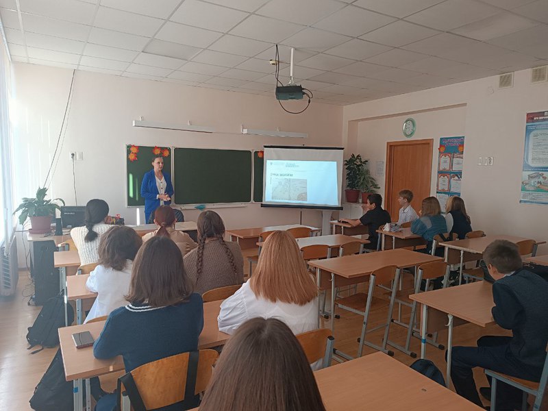 Отдельная часть встречи была посвящена профориентации: ученикам рассказали о профессиях эколога, инженера лаборатории, лаборанта химического анализа и других специальностях природоохранной сферы.