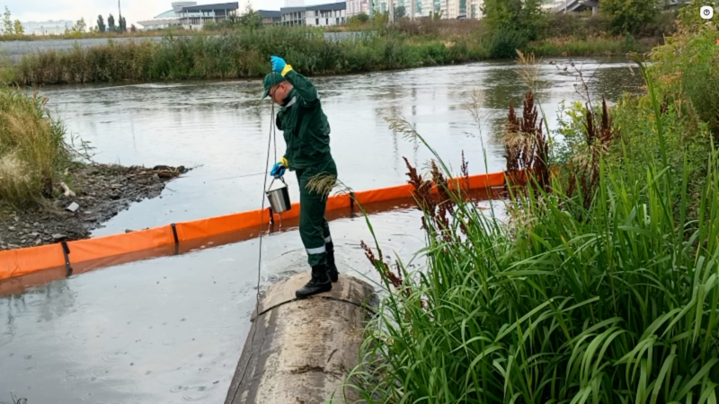 Сотрудники филиала ЦЛАТИ по УФО по Челябинской области отобрали пробы в месте разлива нефтепродуктов на р. Миасс