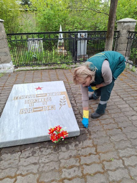 В Магнитогорске сотрудники филиала возложили цветы и приняли участие в уборке братских могил воинов-освободителей на левобережном кладбище города.