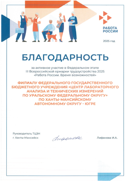В Ханты-Мансийске состоялся федеральный этап Всероссийской ярмарки трудоустройства «Работа России. Время возможностей». Филиал ФГБУ «ЦЛАТИ по УФО» по ХМАО-Югре не в первый раз принимает участие в мероприятии, используя возможность рассказать о деятельности ЦЛАТИ, вакансиях филиала и требованиях к кандидатам, а также проконсультировать соискателей по вопросам трудоустройства.