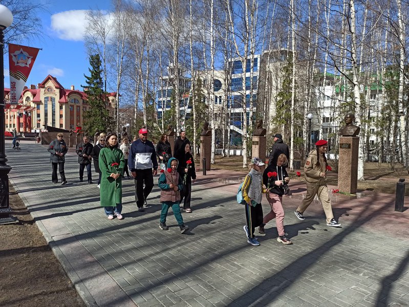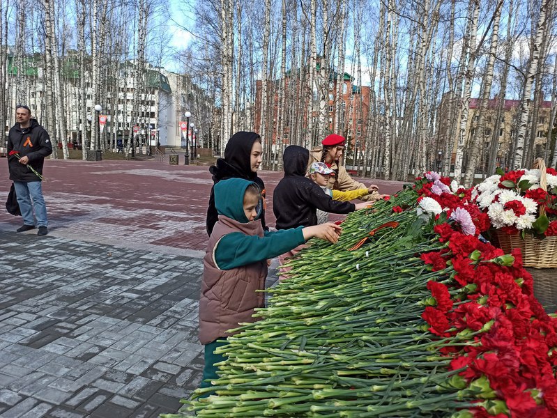 В преддверии Великого праздника в парке Победы города Ханты-Мансийска прошла торжественная церемония возложения цветов к Вечному огню. Сотрудники филиала ФГБУ «ЦЛАТИ по УФО» по ХМАО-Югре вместе со своими детьми почтили память героев, павших на полях сражений.