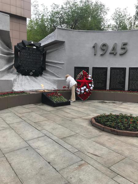 После окончания шествия состоялась церемония возложения цветов и минута молчания.