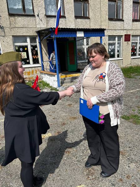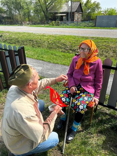 Молодёжный совет филиала вручил георгиевские ленточки жителям села, а школьникам военные пилотки с красной звездой, точной копией солдатского головного убора времен Великой Отечественной войны.