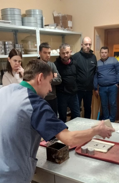 Сотрудники испытательной лаборатории рассказали о методах физико-механических испытаний строительных материалов, в том числе полученных при переработке отходов бурения и продемонстрировали рабочее оборудование, используемое для подобных испытаний.