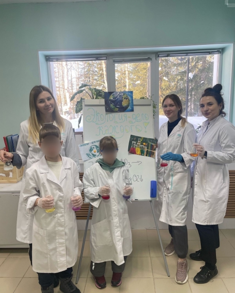 В ходе мероприятия сотрудники лаборатории провели для ребят урок экологии и мастер-класс, на котором показали эксперименты с химическими реакциями различных компонентов.