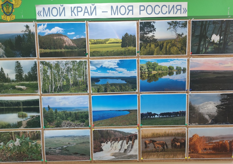 В холле филиала была оформлена тематическая фотовыставка «Мой край – моя Россия». На стенде разместились фото основных природных Уральских достопримечательностей: гор, озер, рек, а также представителей местной флоры и фауны.