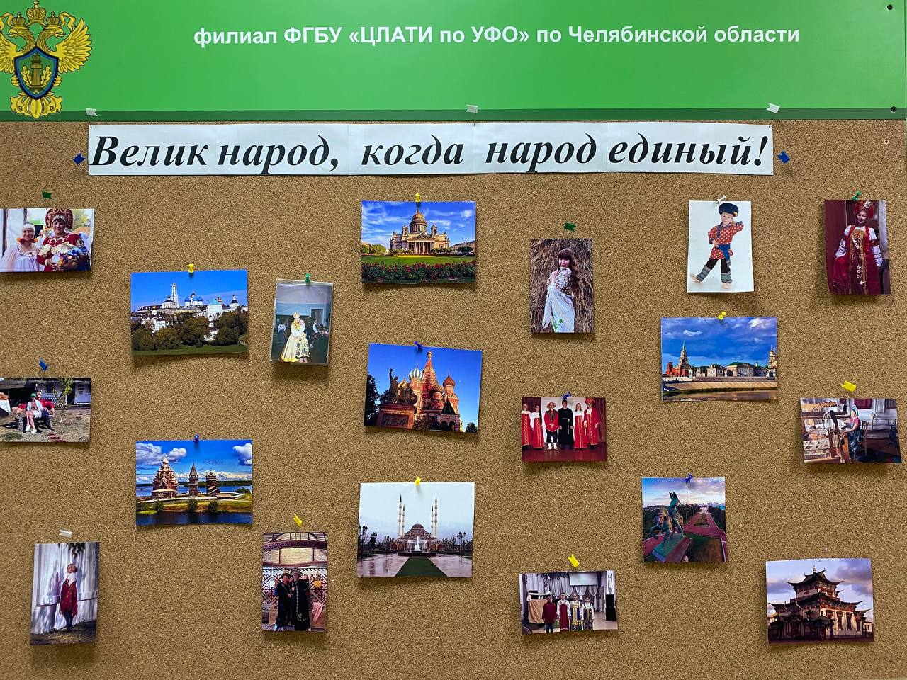 Сотрудники филиала совместными усилиями подготовили фотовыставку «Велик народ, когда народ единый», на которой разместились главные достопримечательности Российских городов – Москвы, Санкт-Петербурга, Казани, Уфы и других, а также фотографии работников и их детей в национальных костюмах.