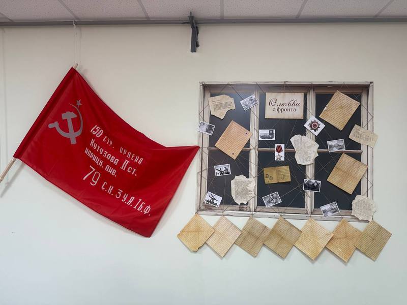 На стенде «О любви с фронта» размещены фронтовые письма, написанные своим родным в коротких затишьях между боями. Письма предоставлены нашими сотрудниками из семейных архивов. На стенде с фотохроникой «Праздник Великой Победы» представлены уникальные снимки военных корреспондентов.