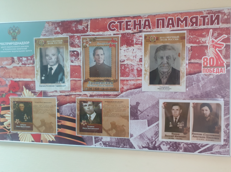 Также в филиале оформлена «Стена памяти» с фотографиями ветеранов — предков сотрудников филиала.